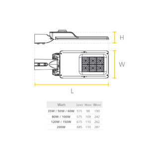 Luminaria con chasís robusto y liviano en aluminio inyectado, con lentes en policarbonato y disipador de calor integrado. Base para fotocelda integrada (NEMA 3 Pines), driver de alta precisión y protección de sobrecalentamiento. Temperatura ambiente de operación: -25°C~40°C. Driver configurable, permite ajustar la potencia de la luminaria entre el 100% y el 75% de la potencia nominal. Opcional driver 0-10V y base para fotocelda 5 ó 7 pines.