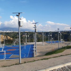Componentes: Proyector LED de alta eficacia, panel solar policristalino fotovoltaico y batería, soporte para panel solar, controlador solar y 3 mt de cable solar para conexión del panel solar, conjunto 100% solar, no requiere cableado o acometida eléctrica Configurado para trabajar 12H al 100%. Temperatura de operación del sistema solar 0°C~+40°C Garantía del kit por componente Panel solar con vidrio autolimpiante de alta transmisión con revestimiento antirreflectante.